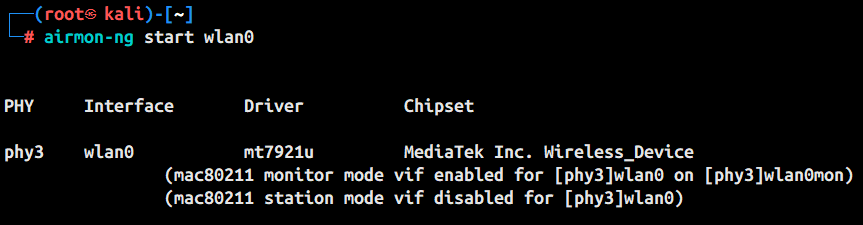 ★开启网卡监听airmon-ng start wlan0