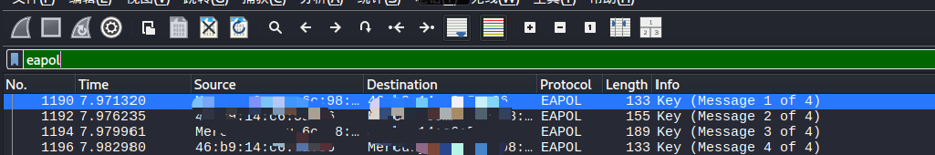 ★第一步里面进行了抓包操作,通过用户断网后重新连接的时候抓到握手包(handshake前缀)